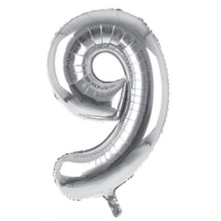 34IN SILVER NUMBER 9 FOIL BALLOON