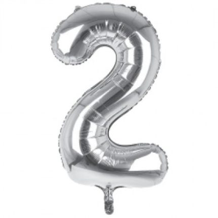 34″ SILVER NUMBER 2 FOIL BALLOON