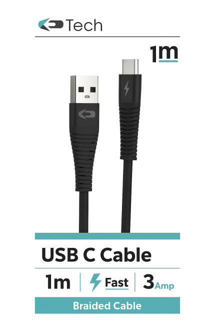 USB C 1M BRAIDED CABLE BLACK