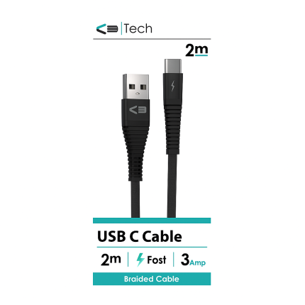 USB C 2M BRAIDED CABLE BLACK