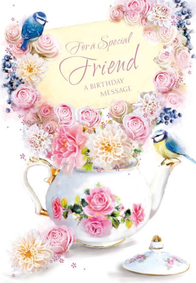 BIRTHDAY CARD FOR FRIEND (FLORAL TEAPOT DESIGN)