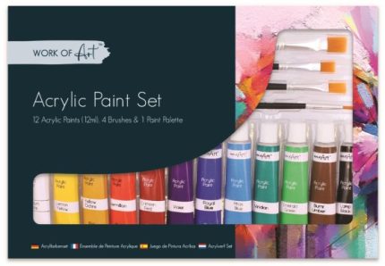 £4.011 × Acrylic Paint Set (12 × 12ml paints, 4 brushes, 1 palette)