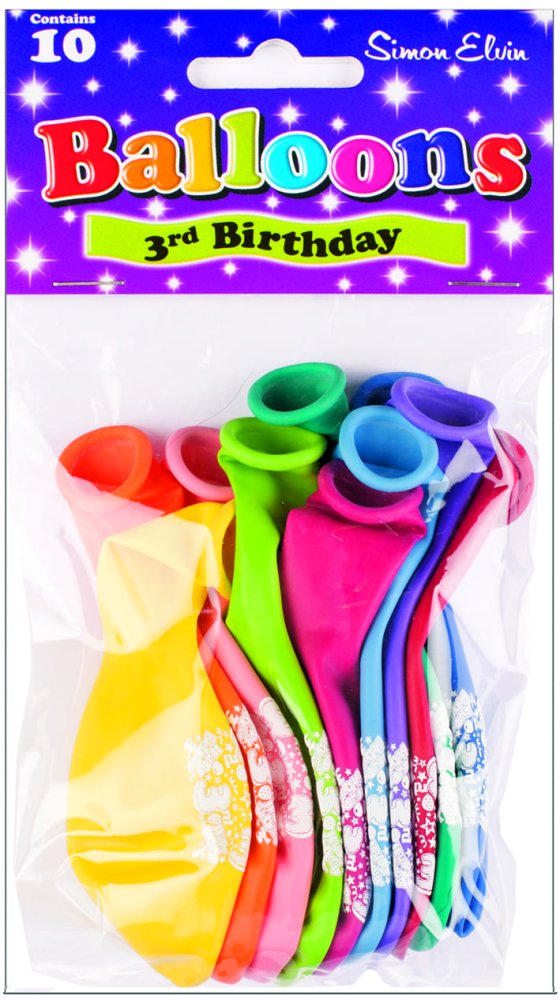 A bright and playful printed latex balloon designed to celebrate a 3rd birthday. Featuring a bold age “3” design with cheerful colours, it’s perfect for party décor, balloon bouquets, or table displays. Suitable for air or helium inflation.