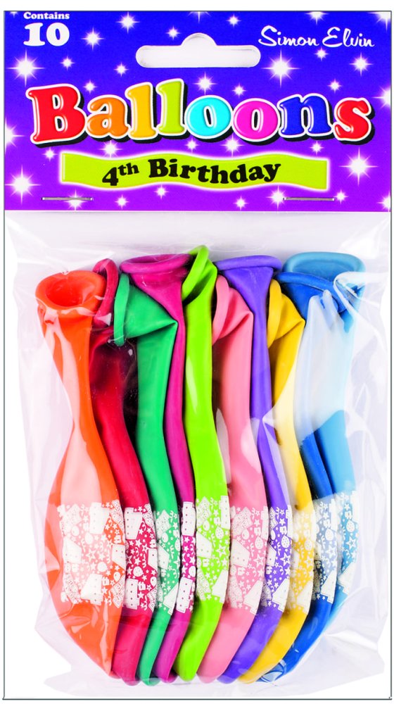 Colourful printed latex balloon ideal for celebrating a 4th birthday.