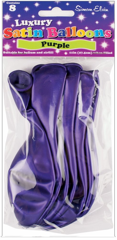 A pack of elegant satin-finish purple balloons, each measuring 11 inches when inflated. These balloons add a soft sheen and rich colour to party décor, making them perfect for birthdays, celebrations, themed events, and balloon arrangements.