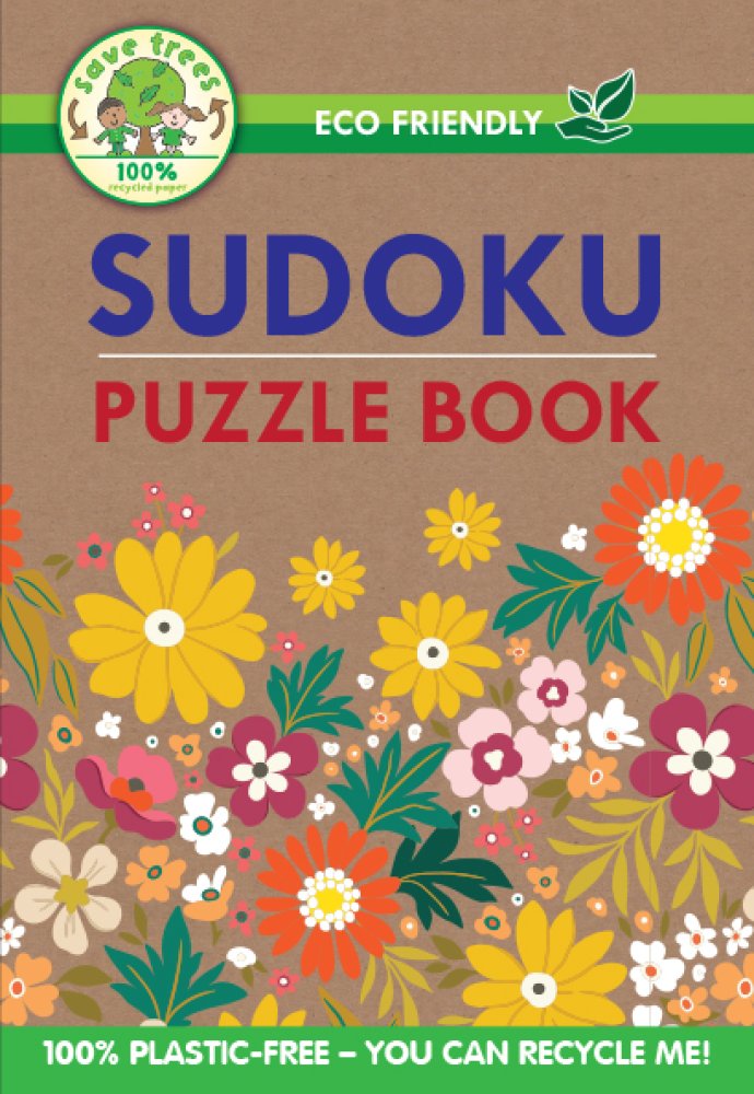 Eco-friendly A5 Sudoku puzzle book made from recycled paper with relaxing brain-boosting challenges.
