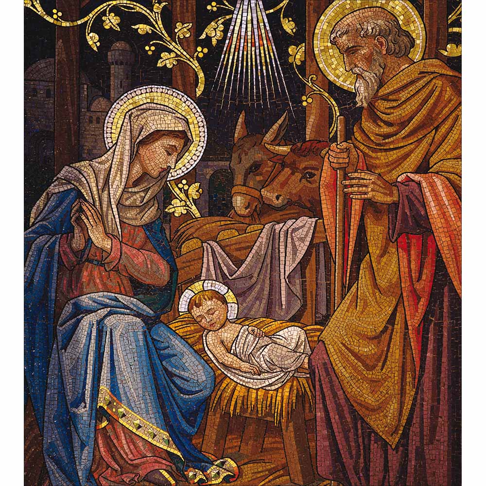 A traditional Christmas card featuring a detailed nativity scene, perfect for sharing meaningful and heartfelt festive wishes.