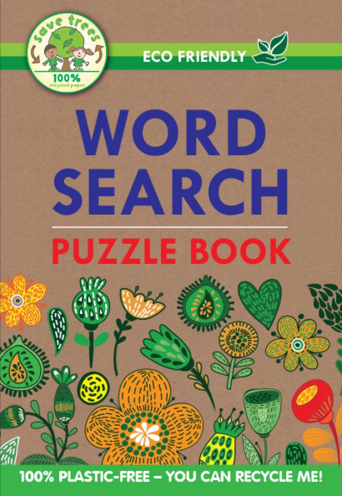 Eco-friendly A5 word search puzzle book made from 100% recycled paper. Plastic-free and available in 4 beautiful floral designs.